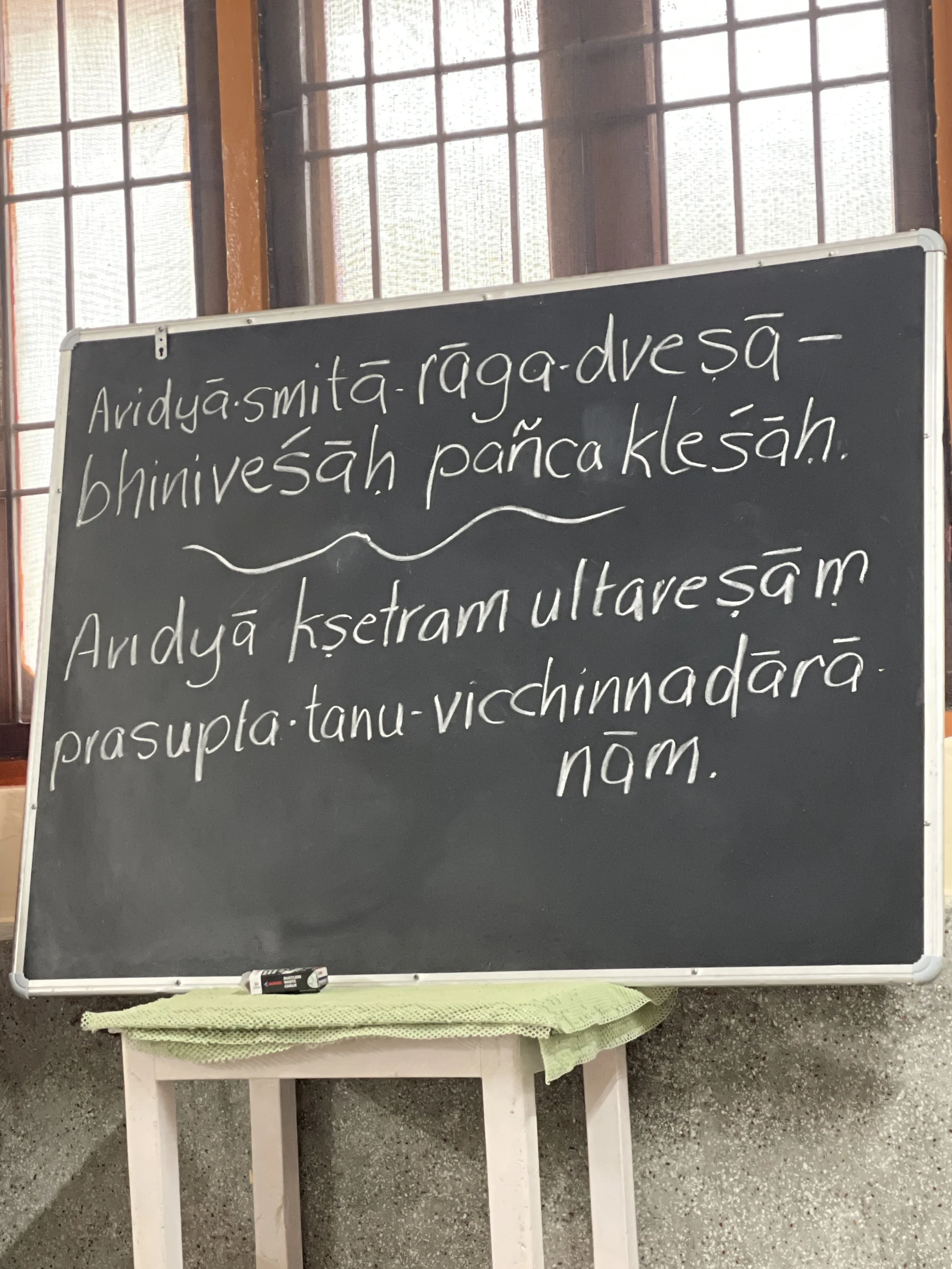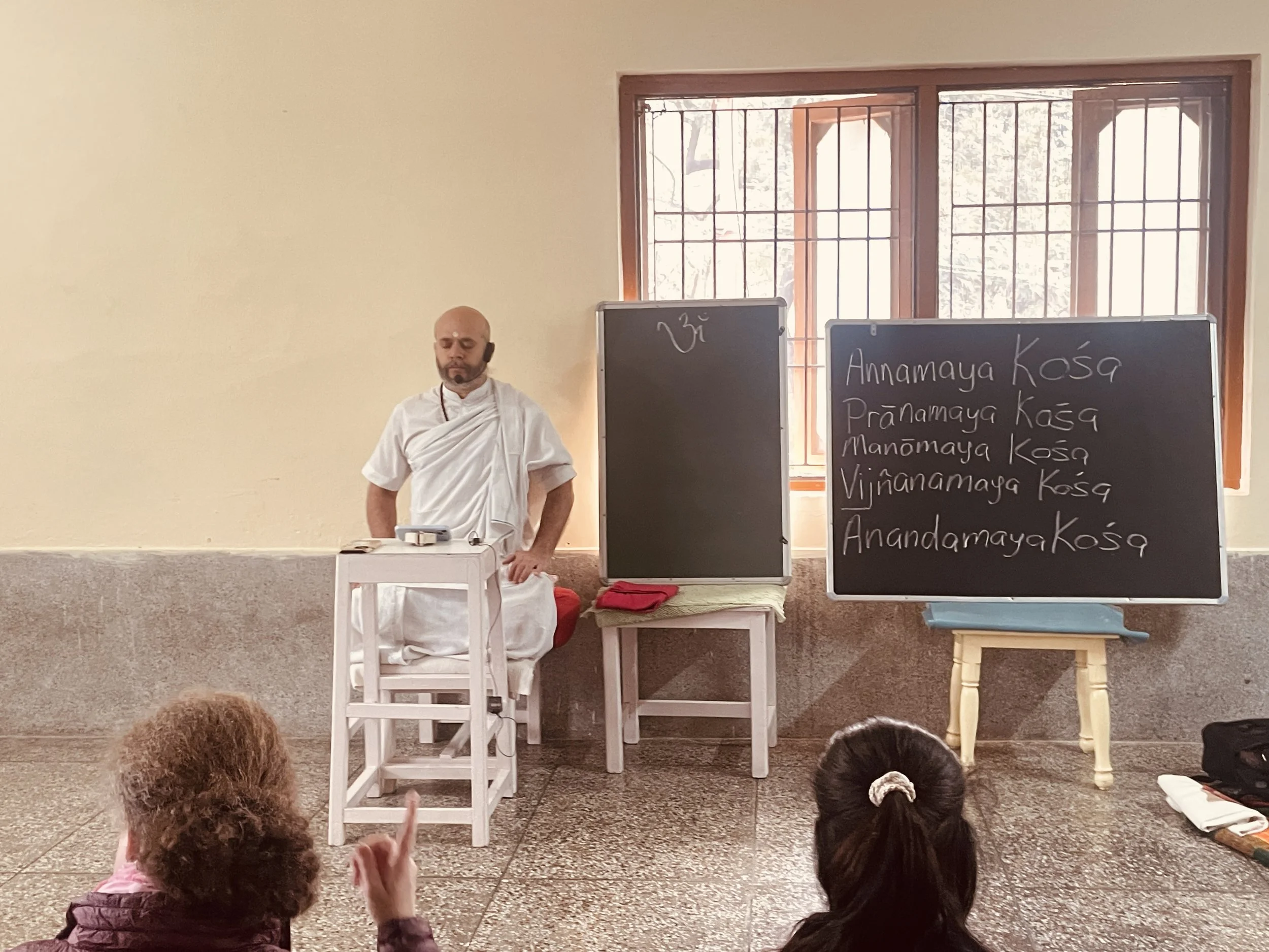 As we stood on our mats the self-study, svadhyaya, began, and it began with the feet. We spend so much time on our feet, yet most of the time we're not even aware of them. Our feet are the foundation of the body, just like the roots of a tree. Usha ji had us focus on our feet by practicing different variations of Virasana and Sankatasana (Sanskrit: "being in a difficult situation"). Guruji's words really came to life: "Practice isn't just about feeling good. It's about awareness, and awareness is what allows us to notice and understand both the pleasure and the pain."