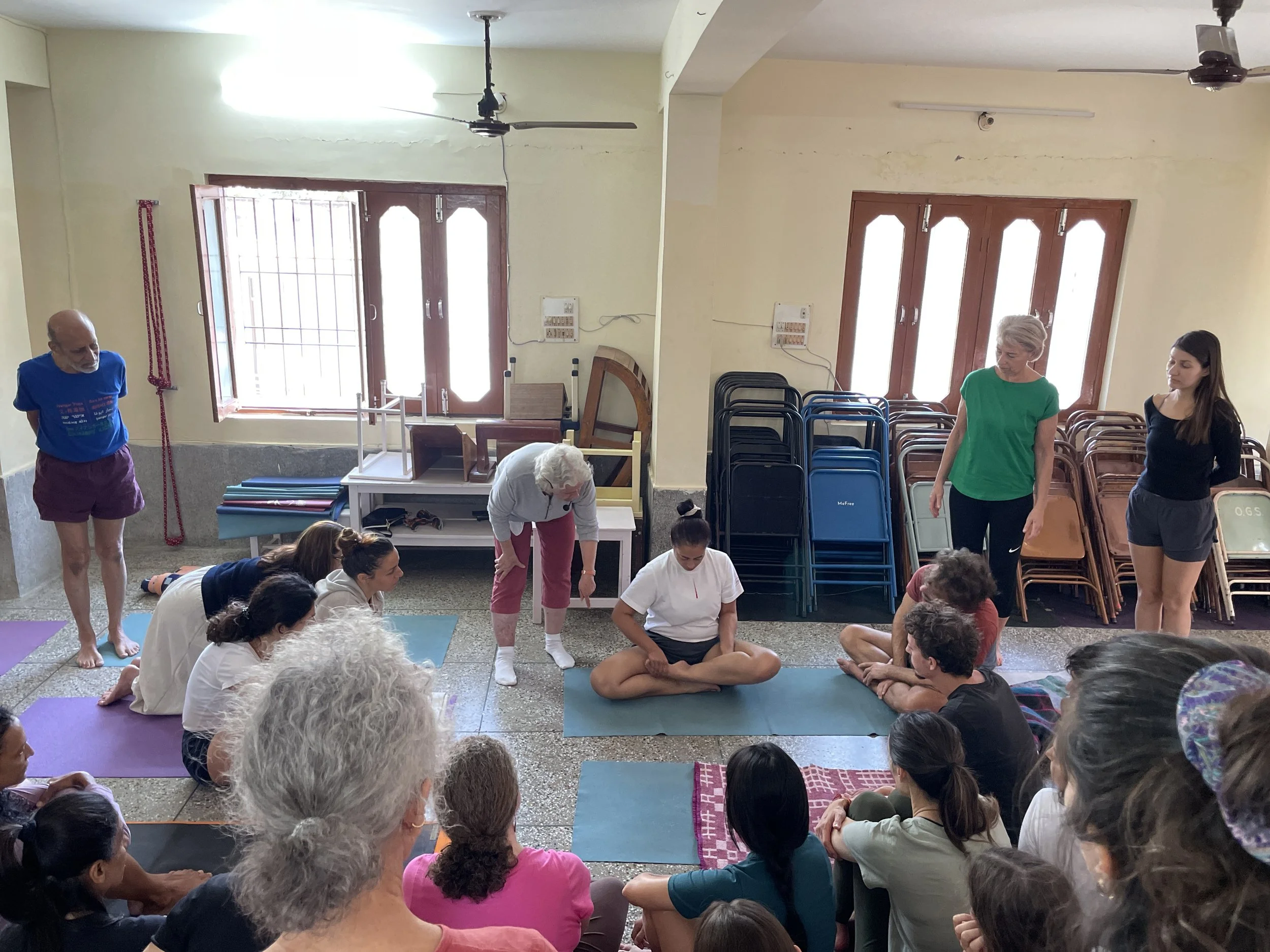 Senior Iyengar Instructor Zubin, who teaches in Mumbai taught a nine day intensive course to 52 students, including 35 students from China. This was Zubin's third year to teach a course in Rishikesh to a Chinese group mixed with students from Yoga Kendra.